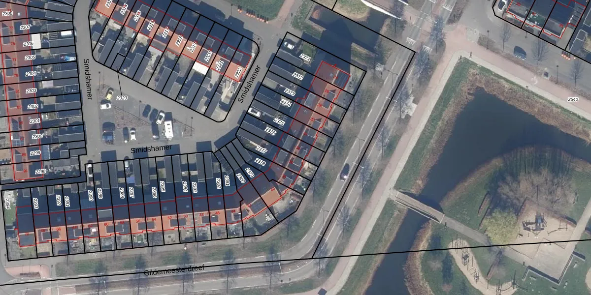 Het perceel waarop Smidshamer 34 staat heeft een oppervlakte van 162 m². Dit is een middelgroot perceel. De perceeloppervlakte wordt geregistreerd door het Kadaster. Gedetailleerde informatie over de maten van dit perceel kunt u vinden in het rapport Kadastrale kaart met maatvoering van Smidshamer 34.