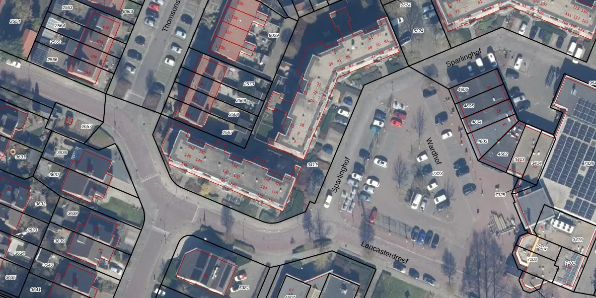 Sparlinghof 1 is gelegen op kadastraal perceel DTN01A3411. Deze kadastrale aanduiding is uniek en wordt gebruikt door het Kadaster om eigendomsrechten en andere zakelijke rechten vast te leggen. Het perceel maakt onderdeel uit van de kadastrale gemeente Dronten.