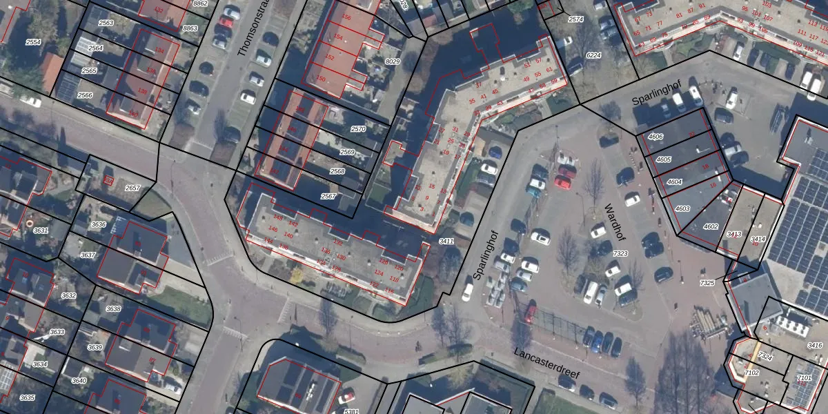 Sparlinghof 3 is gelegen op kadastraal perceel DTN01A3411. Deze kadastrale aanduiding is uniek en wordt gebruikt door het Kadaster om eigendomsrechten en andere zakelijke rechten vast te leggen. Het perceel maakt onderdeel uit van de kadastrale gemeente Dronten.
