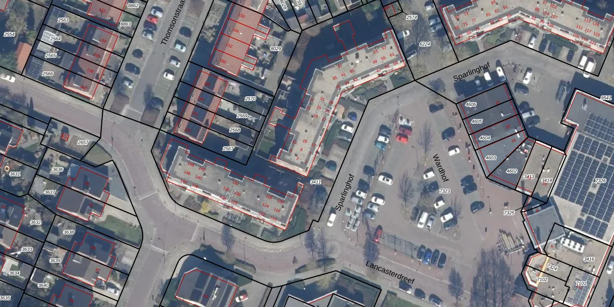 Sparlinghof 5 is gelegen op kadastraal perceel DTN01A3411. Deze kadastrale aanduiding is uniek en wordt gebruikt door het Kadaster om eigendomsrechten en andere zakelijke rechten vast te leggen. Het perceel maakt onderdeel uit van de kadastrale gemeente Dronten.
