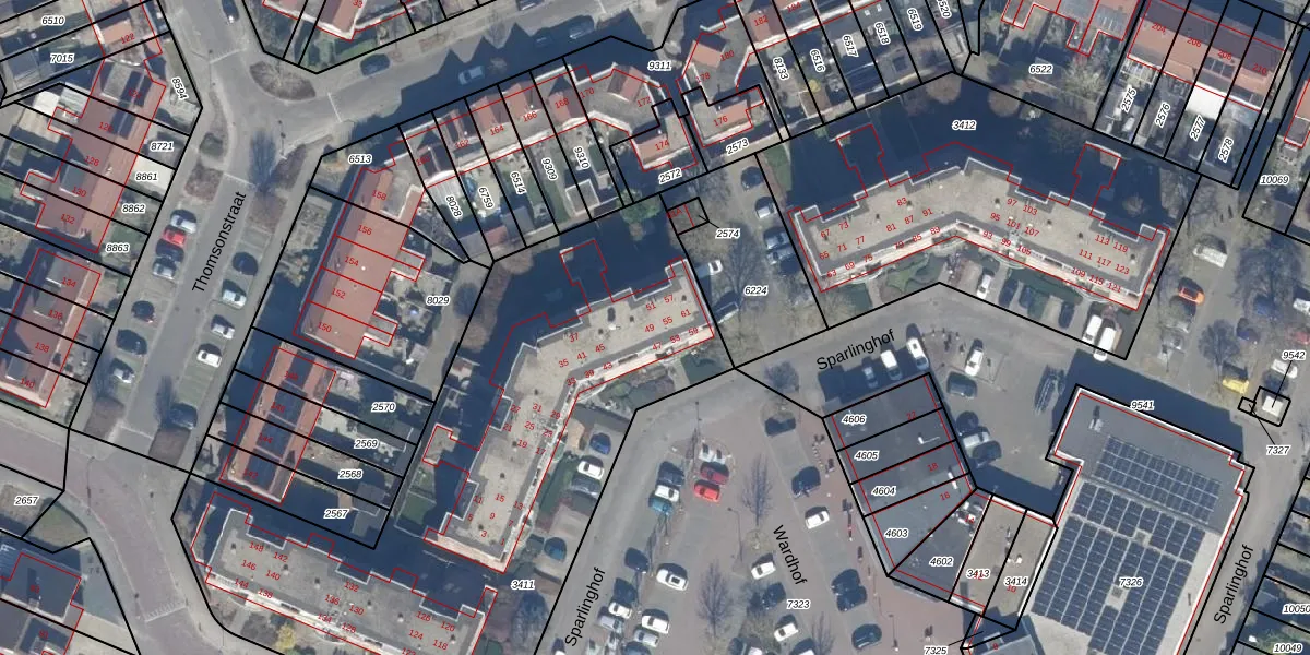 Sparlinghof 59 is gelegen op kadastraal perceel DTN01A3411. Deze kadastrale aanduiding is uniek en wordt gebruikt door het Kadaster om eigendomsrechten en andere zakelijke rechten vast te leggen. Het perceel maakt onderdeel uit van de kadastrale gemeente Dronten.