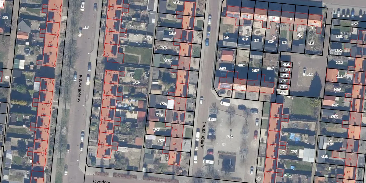 Het perceel waarop Spiegelstraat 14 staat heeft een oppervlakte van 3928 m². Dit is een zeer groot perceel. De perceeloppervlakte wordt geregistreerd door het Kadaster. Gedetailleerde informatie over de maten van dit perceel kunt u vinden in het rapport Kadastrale kaart met maatvoering van Spiegelstraat 14.