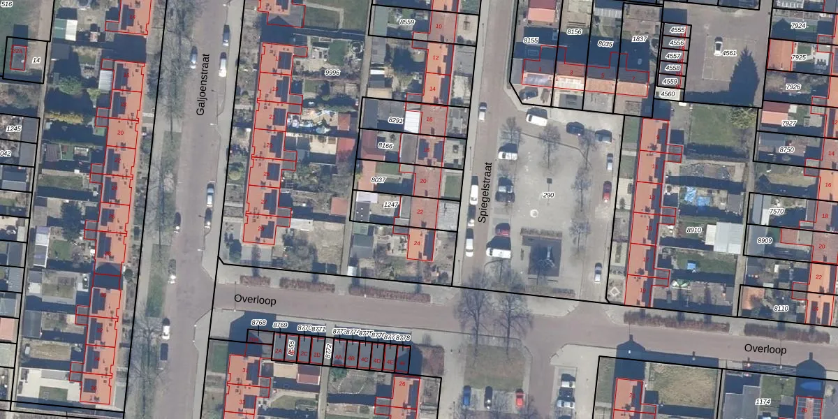 Het perceel waarop Spiegelstraat 22 staat heeft een oppervlakte van 191 m². Dit is een middelgroot perceel. De perceeloppervlakte wordt geregistreerd door het Kadaster. Gedetailleerde informatie over de maten van dit perceel kunt u vinden in het rapport Kadastrale kaart met maatvoering van Spiegelstraat 22.