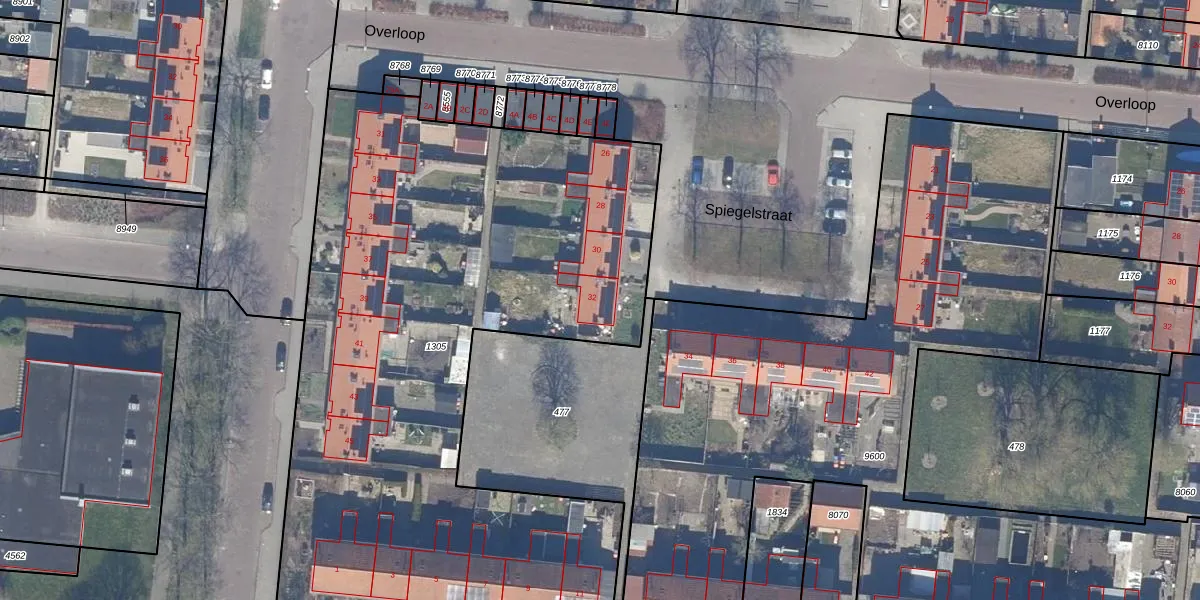 Het perceel waarop Spiegelstraat 32 staat heeft een oppervlakte van 4073 m². Dit is een zeer groot perceel. De perceeloppervlakte wordt geregistreerd door het Kadaster. Gedetailleerde informatie over de maten van dit perceel kunt u vinden in het rapport Kadastrale kaart met maatvoering van Spiegelstraat 32.