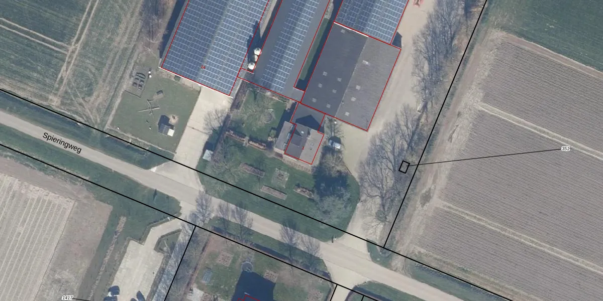 Het perceel waarop Spieringweg 1 staat heeft een oppervlakte van 27,6 ha. Dit is een zeer groot perceel. De perceeloppervlakte wordt geregistreerd door het Kadaster. Gedetailleerde informatie over de maten van dit perceel kunt u vinden in het rapport Kadastrale kaart met maatvoering van Spieringweg 1.