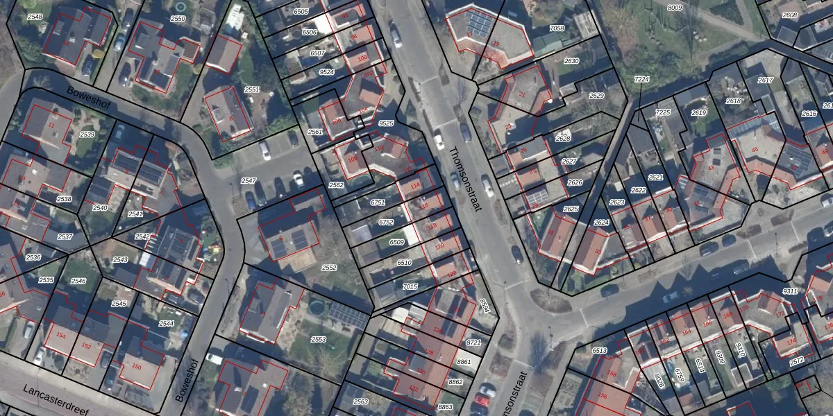 Gebruik de zoekbalk of klik op een perceel voor informatie over de adressen binnen dit perceel.
