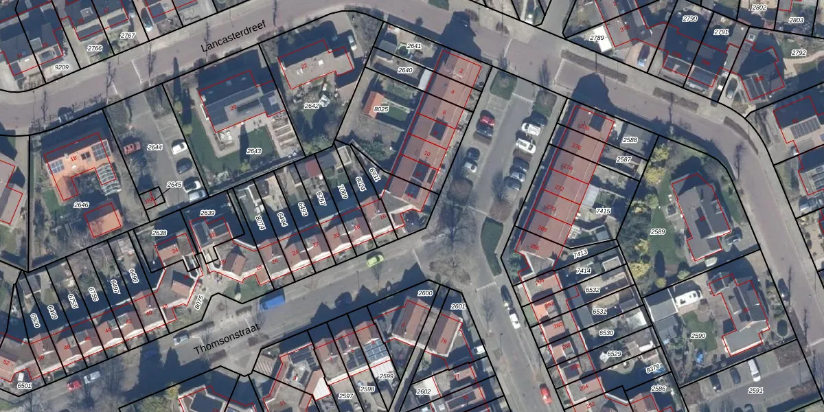 Het perceel waarop Thomsonstraat 14 staat heeft een oppervlakte van 174 m². Dit is een middelgroot perceel. De perceeloppervlakte wordt geregistreerd door het Kadaster. Gedetailleerde informatie over de maten van dit perceel kunt u vinden in het rapport Kadastrale kaart met maatvoering van Thomsonstraat 14.