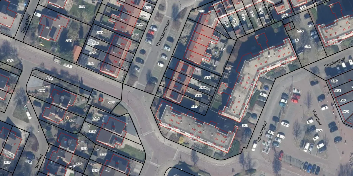 Het perceel waarop Thomsonstraat 144 staat heeft een oppervlakte van 164 m². Dit is een middelgroot perceel. De perceeloppervlakte wordt geregistreerd door het Kadaster. Gedetailleerde informatie over de maten van dit perceel kunt u vinden in het rapport Kadastrale kaart met maatvoering van Thomsonstraat 144.