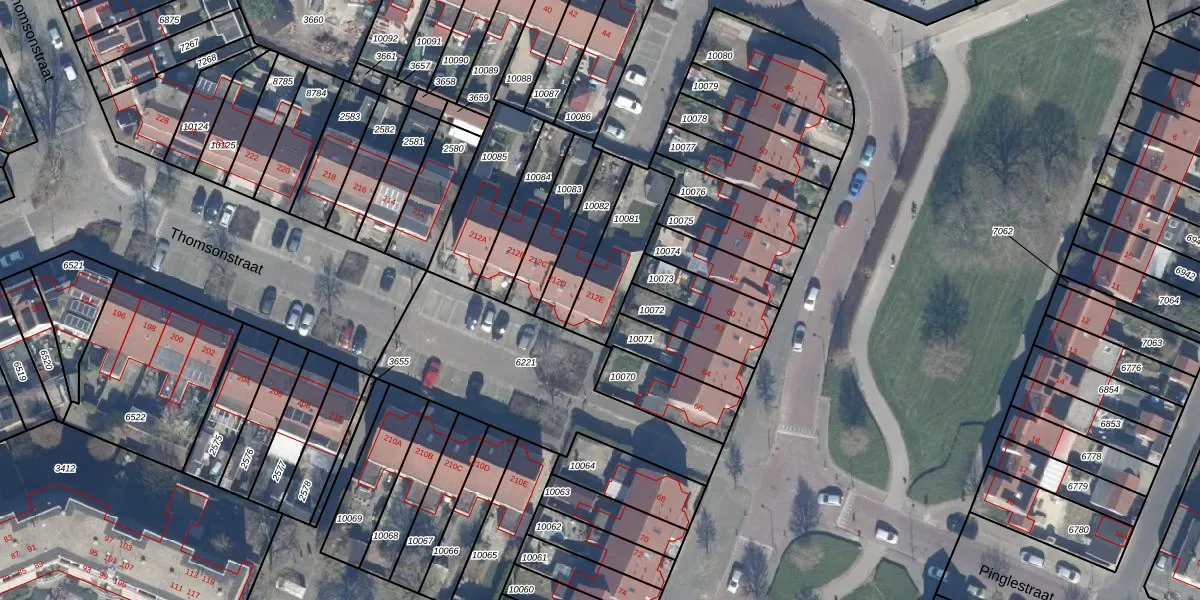 Het perceel waarop Thomsonstraat 212-E staat heeft een oppervlakte van 225 m². Dit is een middelgroot perceel. De perceeloppervlakte wordt geregistreerd door het Kadaster. Gedetailleerde informatie over de maten van dit perceel kunt u vinden in het rapport Kadastrale kaart met maatvoering van Thomsonstraat 212-E.