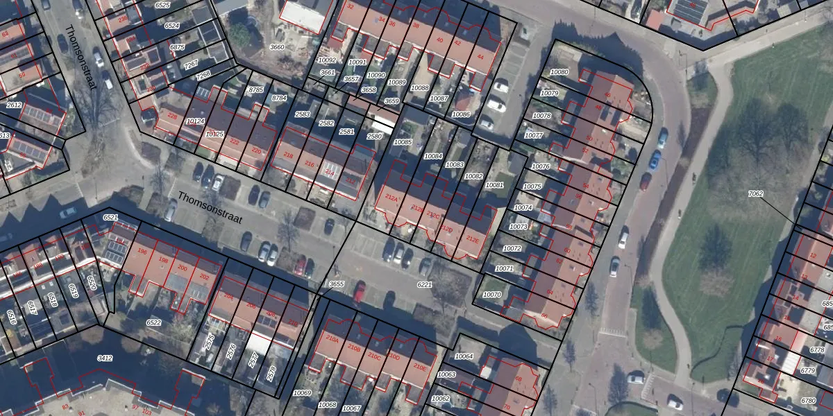 Het perceel waarop Thomsonstraat 212-B staat heeft een oppervlakte van 166 m². Dit is een middelgroot perceel. De perceeloppervlakte wordt geregistreerd door het Kadaster. Gedetailleerde informatie over de maten van dit perceel kunt u vinden in het rapport Kadastrale kaart met maatvoering van Thomsonstraat 212-B.