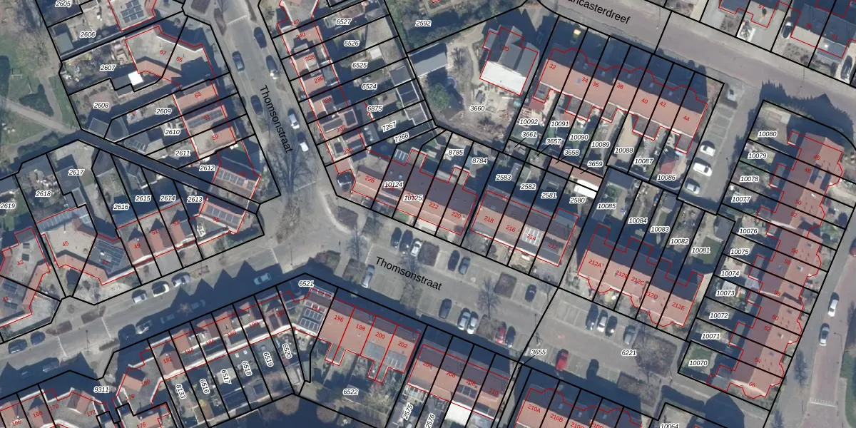 Het perceel waarop Thomsonstraat 222 staat heeft een oppervlakte van 130 m². Dit is een middelgroot perceel. De perceeloppervlakte wordt geregistreerd door het Kadaster. Gedetailleerde informatie over de maten van dit perceel kunt u vinden in het rapport Kadastrale kaart met maatvoering van Thomsonstraat 222.