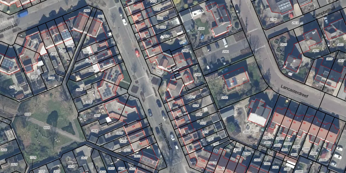 Het perceel waarop Thomsonstraat 244 staat heeft een oppervlakte van 398 m². Dit is een groot perceel. De perceeloppervlakte wordt geregistreerd door het Kadaster. Gedetailleerde informatie over de maten van dit perceel kunt u vinden in het rapport Kadastrale kaart met maatvoering van Thomsonstraat 244.