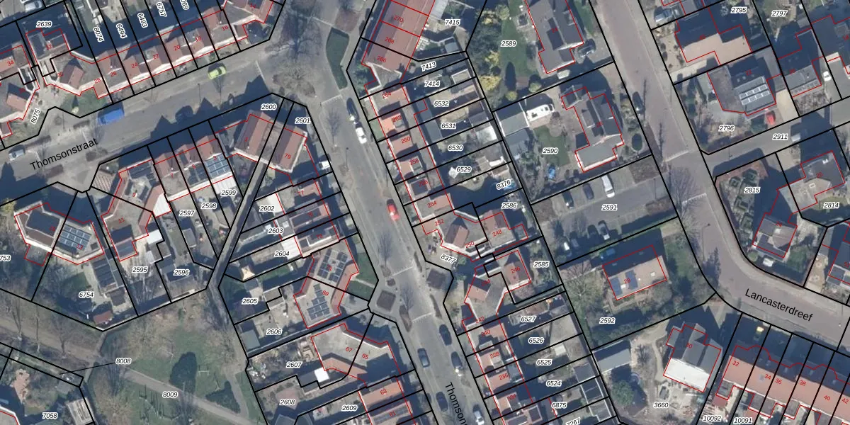 Het perceel waarop Thomsonstraat 254 staat heeft een oppervlakte van 165 m². Dit is een middelgroot perceel. De perceeloppervlakte wordt geregistreerd door het Kadaster. Gedetailleerde informatie over de maten van dit perceel kunt u vinden in het rapport Kadastrale kaart met maatvoering van Thomsonstraat 254.