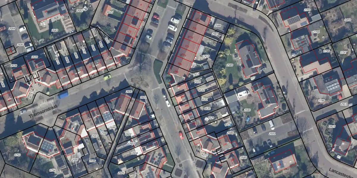 Het perceel waarop Thomsonstraat 264 staat heeft een oppervlakte van 142 m². Dit is een middelgroot perceel. De perceeloppervlakte wordt geregistreerd door het Kadaster. Gedetailleerde informatie over de maten van dit perceel kunt u vinden in het rapport Kadastrale kaart met maatvoering van Thomsonstraat 264.