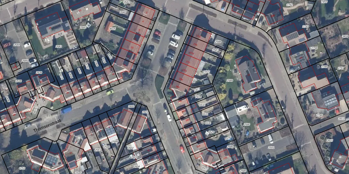 Het perceel waarop Thomsonstraat 266 staat heeft een oppervlakte van 182 m². Dit is een middelgroot perceel. De perceeloppervlakte wordt geregistreerd door het Kadaster. Gedetailleerde informatie over de maten van dit perceel kunt u vinden in het rapport Kadastrale kaart met maatvoering van Thomsonstraat 266.