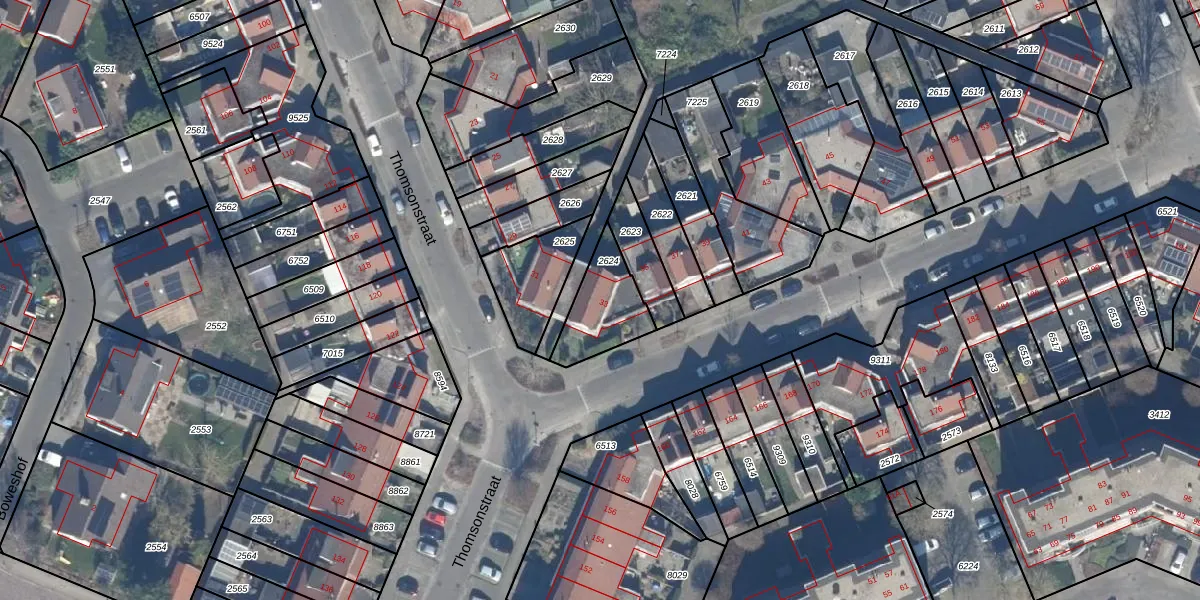Het perceel waarop Thomsonstraat 33 staat heeft een oppervlakte van 200 m². Dit is een middelgroot perceel. De perceeloppervlakte wordt geregistreerd door het Kadaster. Gedetailleerde informatie over de maten van dit perceel kunt u vinden in het rapport Kadastrale kaart met maatvoering van Thomsonstraat 33.