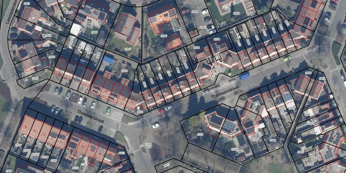 Het perceel waarop Thomsonstraat 44 staat heeft een oppervlakte van 145 m². Dit is een middelgroot perceel. De perceeloppervlakte wordt geregistreerd door het Kadaster. Gedetailleerde informatie over de maten van dit perceel kunt u vinden in het rapport Kadastrale kaart met maatvoering van Thomsonstraat 44.