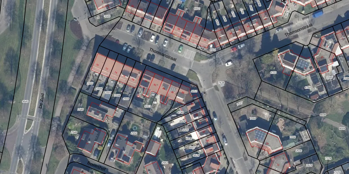 Het perceel waarop Thomsonstraat 86 staat heeft een oppervlakte van 624 m². Dit is een groot perceel. De perceeloppervlakte wordt geregistreerd door het Kadaster. Gedetailleerde informatie over de maten van dit perceel kunt u vinden in het rapport Kadastrale kaart met maatvoering van Thomsonstraat 86.