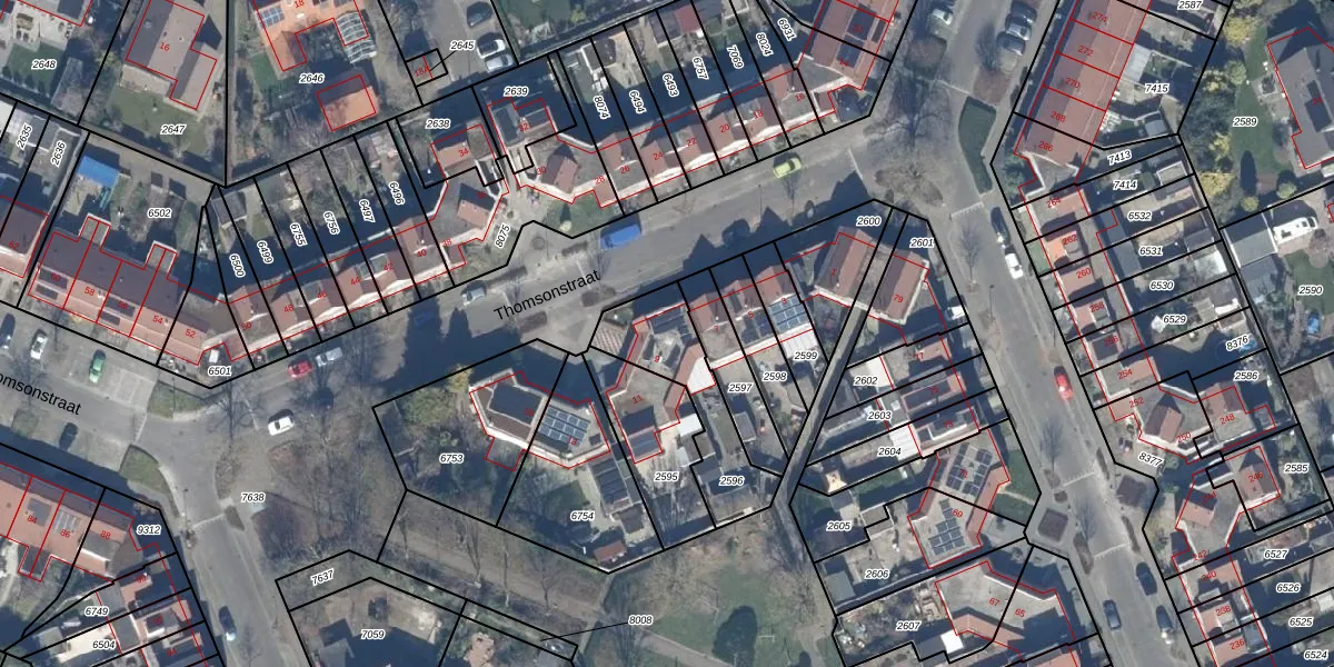 Het perceel waarop Thomsonstraat 9 staat heeft een oppervlakte van 326 m². Dit is een groot perceel. De perceeloppervlakte wordt geregistreerd door het Kadaster. Gedetailleerde informatie over de maten van dit perceel kunt u vinden in het rapport Kadastrale kaart met maatvoering van Thomsonstraat 9.