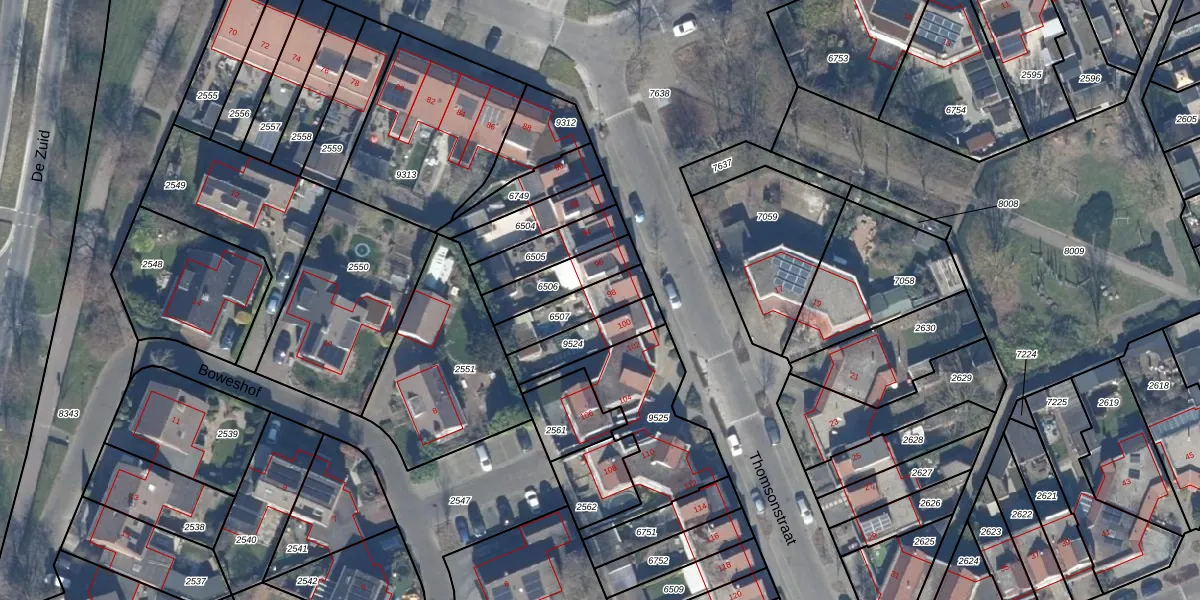 Gebruik de zoekbalk of klik op een perceel voor informatie over de adressen binnen dit perceel.