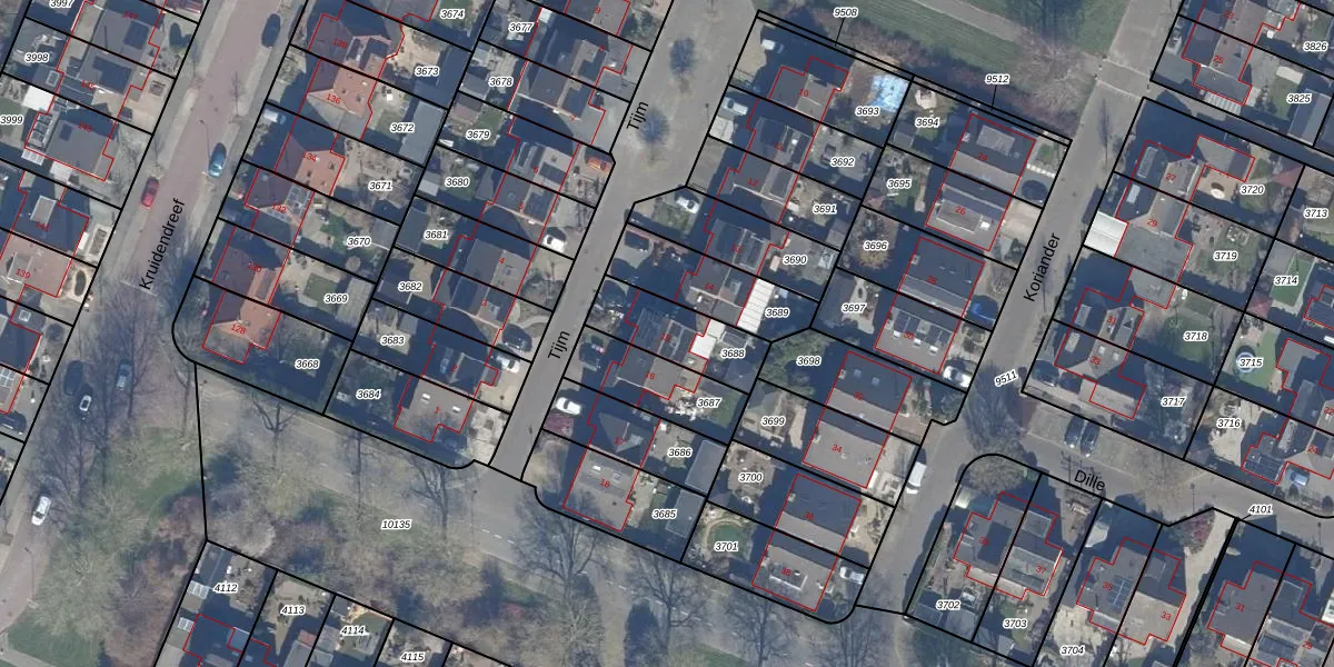 Gebruik de zoekbalk of klik op een perceel voor informatie over de adressen binnen dit perceel.