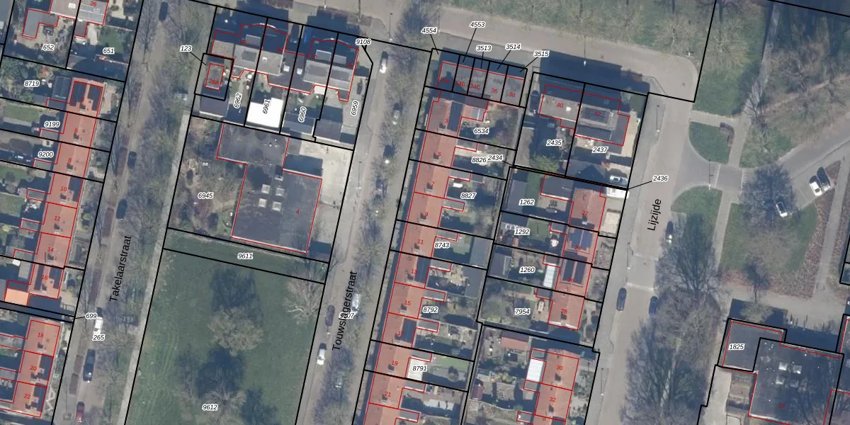Het perceel waarop Touwslagerstraat 9 staat heeft een oppervlakte van 343 m². Dit is een groot perceel. De perceeloppervlakte wordt geregistreerd door het Kadaster. Gedetailleerde informatie over de maten van dit perceel kunt u vinden in het rapport Kadastrale kaart met maatvoering van Touwslagerstraat 9.