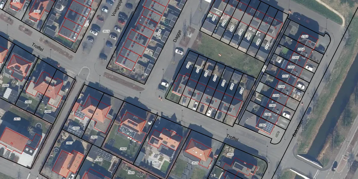 Gebruik de zoekbalk of klik op een perceel voor informatie over de adressen binnen dit perceel.