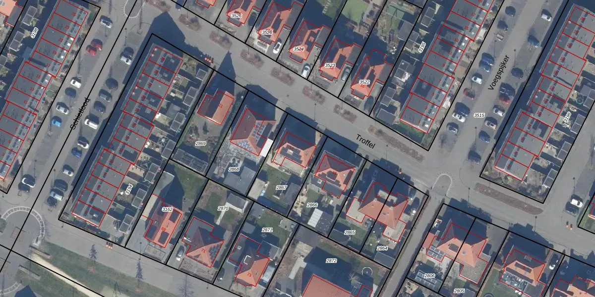 Gebruik de zoekbalk of klik op een perceel voor informatie over de adressen binnen dit perceel.