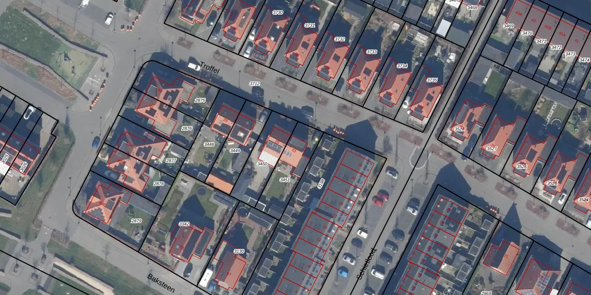 Gebruik de zoekbalk of klik op een perceel voor informatie over de adressen binnen dit perceel.