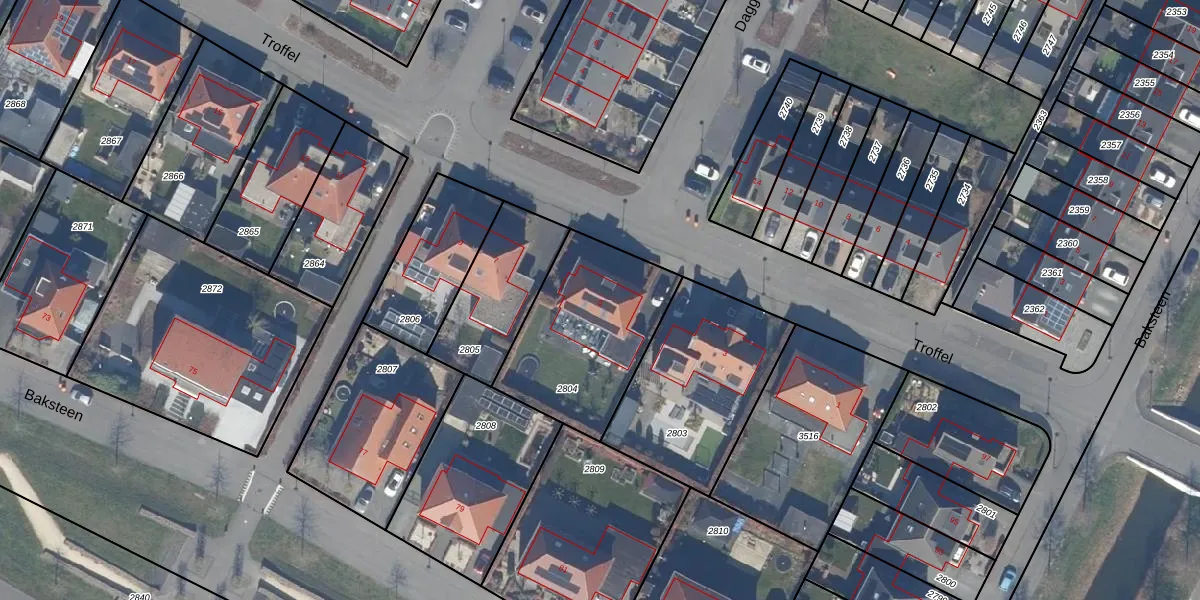 Gebruik de zoekbalk of klik op een perceel voor informatie over de adressen binnen dit perceel.