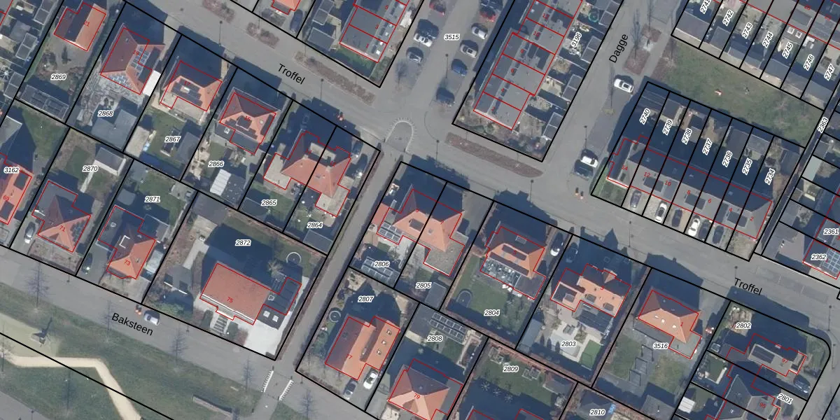 Het perceel waarop Troffel 9 staat heeft een oppervlakte van 340 m². Dit is een groot perceel. De perceeloppervlakte wordt geregistreerd door het Kadaster. Gedetailleerde informatie over de maten van dit perceel kunt u vinden in het rapport Kadastrale kaart met maatvoering van Troffel 9.