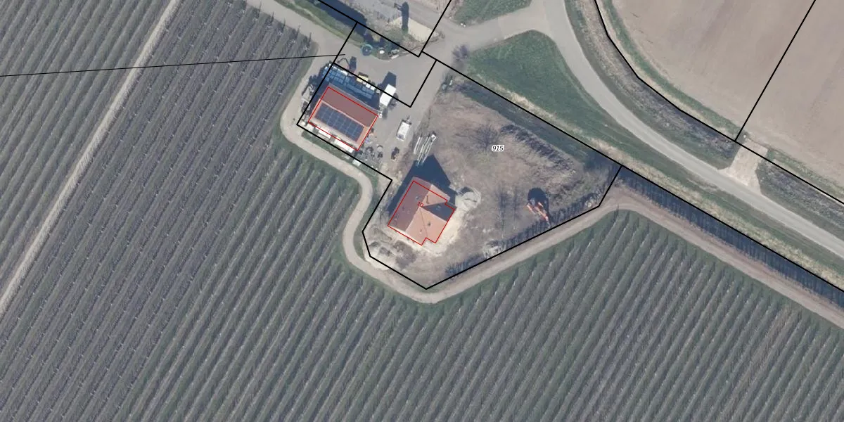 Het adres is gelegen op perceel 915 in de sectie B en de kadastrale gemeente Dronten. De kadastrale aanduiding is aldus DTN01-B-915. Het perceel is 2223 m² groot. Dat is kleiner dan de gemiddelde perceeloppervlakte in Dronten, dat op 1,8 ha ligt. De grootste perceeloppervlakte in de kadastrale gemeente is 25,03 km². De kleinste oppervlakte bedraagt 0 m². Er zijn geen andere adressen aanwezig op het perceel. De huidige grenzen van het perceel zijn digitaal in de Basisregistratie Kadaster (BRK) geregistreerd op 11-12-2000.