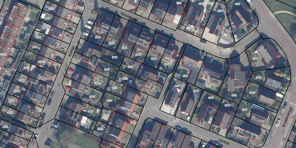 Het perceel waarop Venkel 27 staat heeft een oppervlakte van 297 m². Dit is een middelgroot perceel. De perceeloppervlakte wordt geregistreerd door het Kadaster. Gedetailleerde informatie over de maten van dit perceel kunt u vinden in het rapport Kadastrale kaart met maatvoering van Venkel 27.