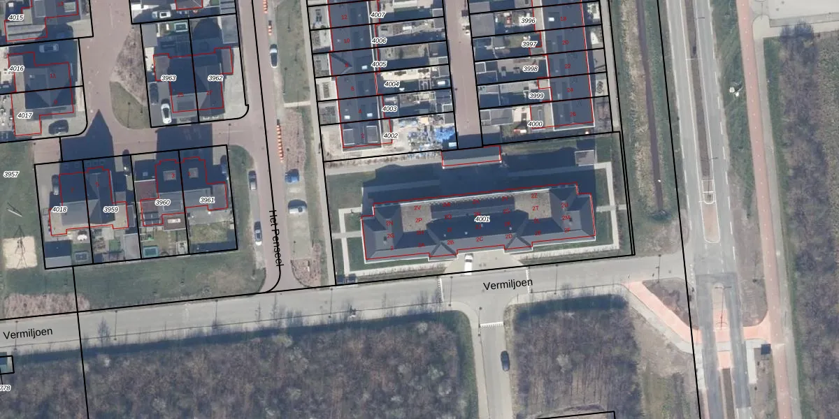 Het perceel waarop Vermiljoen 2-H staat heeft een oppervlakte van 2101 m². Dit is een zeer groot perceel. De perceeloppervlakte wordt geregistreerd door het Kadaster. Gedetailleerde informatie over de maten van dit perceel kunt u vinden in het rapport Kadastrale kaart met maatvoering van Vermiljoen 2-H.