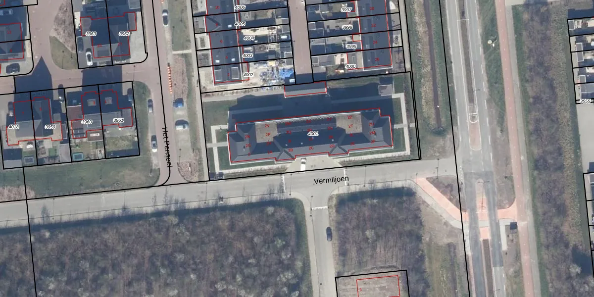 Het perceel waarop Vermiljoen 2-L staat heeft een oppervlakte van 2101 m². Dit is een zeer groot perceel. De perceeloppervlakte wordt geregistreerd door het Kadaster. Gedetailleerde informatie over de maten van dit perceel kunt u vinden in het rapport Kadastrale kaart met maatvoering van Vermiljoen 2-L.