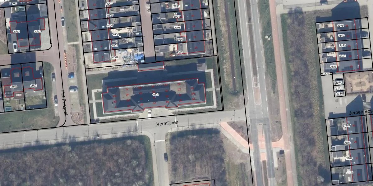 Het perceel waarop Vermiljoen 2-N staat heeft een oppervlakte van 2101 m². Dit is een zeer groot perceel. De perceeloppervlakte wordt geregistreerd door het Kadaster. Gedetailleerde informatie over de maten van dit perceel kunt u vinden in het rapport Kadastrale kaart met maatvoering van Vermiljoen 2-N.