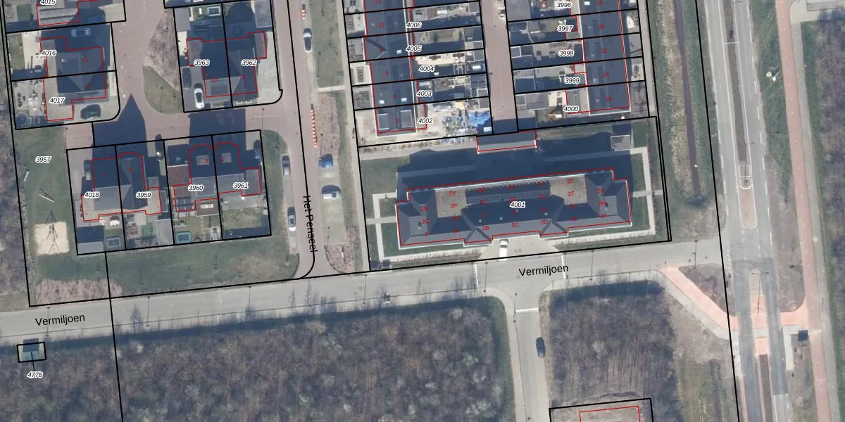 Het perceel waarop Vermiljoen 2-V staat heeft een oppervlakte van 2101 m². Dit is een zeer groot perceel. De perceeloppervlakte wordt geregistreerd door het Kadaster. Gedetailleerde informatie over de maten van dit perceel kunt u vinden in het rapport Kadastrale kaart met maatvoering van Vermiljoen 2-V.