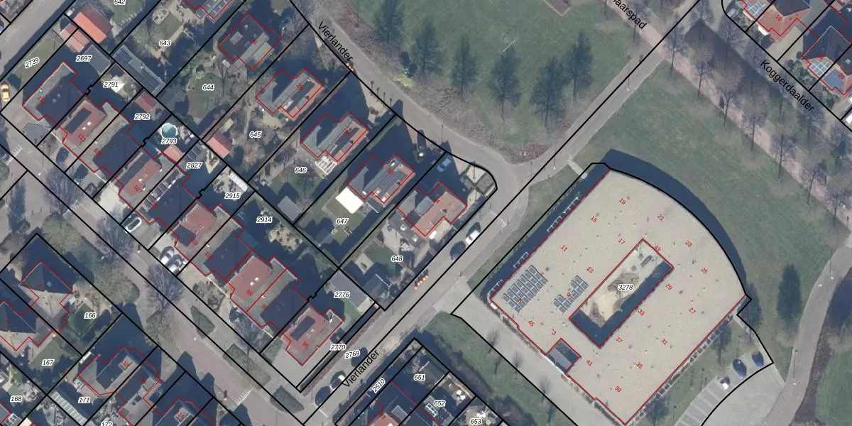 Het perceel waarop Vierlander 34 staat heeft een oppervlakte van 576 m². Dit is een groot perceel. De perceeloppervlakte wordt geregistreerd door het Kadaster. Gedetailleerde informatie over de maten van dit perceel kunt u vinden in het rapport Kadastrale kaart met maatvoering van Vierlander 34.