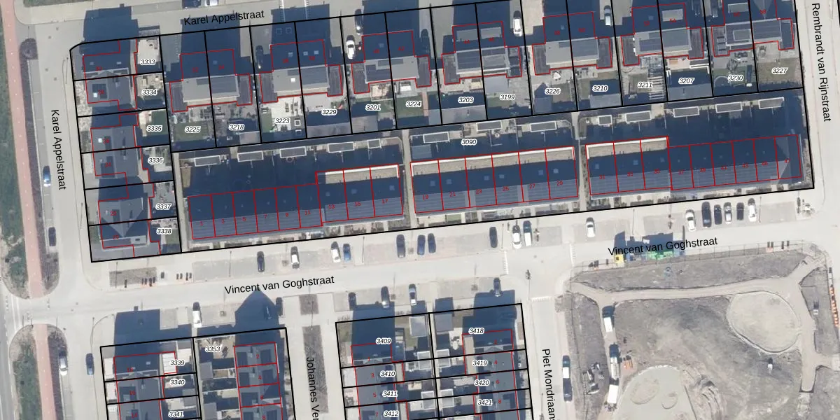 Het perceel waarop Vincent van Goghstraat 19 staat heeft een oppervlakte van 3635 m². Dit is een zeer groot perceel. De perceeloppervlakte wordt geregistreerd door het Kadaster. Gedetailleerde informatie over de maten van dit perceel kunt u vinden in het rapport Kadastrale kaart met maatvoering van Vincent van Goghstraat 19.