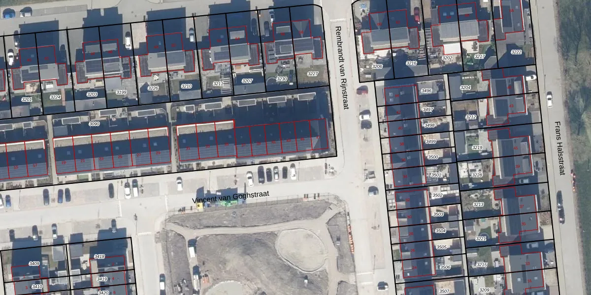 Het perceel waarop Vincent van Goghstraat 43 staat heeft een oppervlakte van 3635 m². Dit is een zeer groot perceel. De perceeloppervlakte wordt geregistreerd door het Kadaster. Gedetailleerde informatie over de maten van dit perceel kunt u vinden in het rapport Kadastrale kaart met maatvoering van Vincent van Goghstraat 43.
