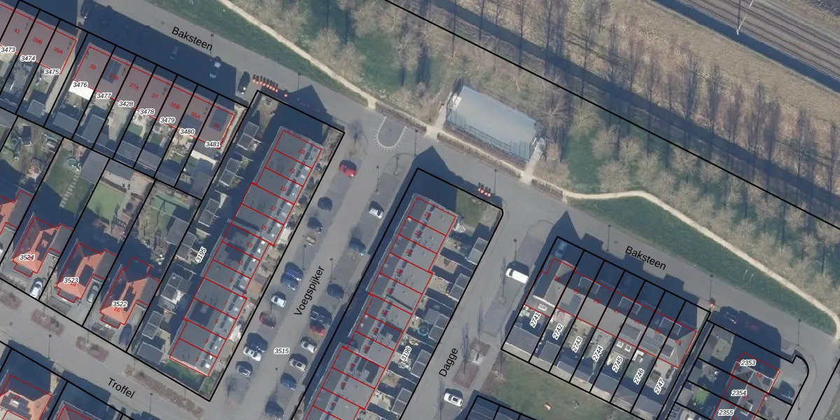 Het perceel waarop Voegspijker 24 staat heeft een oppervlakte van 1644 m². Dit is een zeer groot perceel. De perceeloppervlakte wordt geregistreerd door het Kadaster. Gedetailleerde informatie over de maten van dit perceel kunt u vinden in het rapport Kadastrale kaart met maatvoering van Voegspijker 24.
