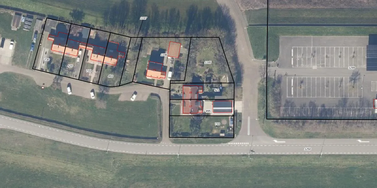 Het adres is gelegen op perceel 521 in de sectie C en de kadastrale gemeente Dronten. De kadastrale aanduiding is aldus DTN01-C-521. De gemiddelde perceelgrootte in Dronten is 1,8 ha. Dit perceel is kleiner: de perceeloppervlakte bedraagt 294 m². De grootste perceeloppervlakte in de kadastrale gemeente is 25,03 km². De kleinste oppervlakte bedraagt 0 m². Op het perceel bevinden zich geen andere adressen. De huidige grenzen van het perceel zijn digitaal in de Basisregistratie Kadaster (BRK) geregistreerd op 29-10-2008.