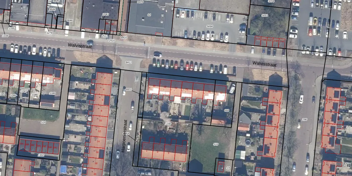 Het perceel waarop Walvisstraat 24 staat heeft een oppervlakte van 5567 m². Dit is een zeer groot perceel. De perceeloppervlakte wordt geregistreerd door het Kadaster. Gedetailleerde informatie over de maten van dit perceel kunt u vinden in het rapport Kadastrale kaart met maatvoering van Walvisstraat 24.