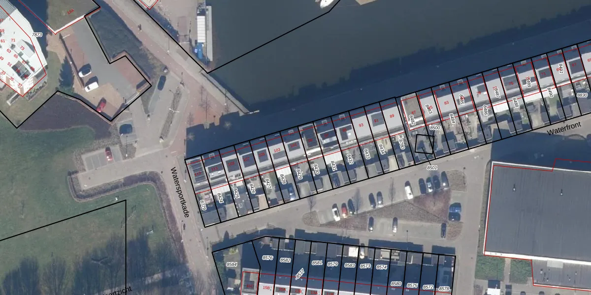 Waterfront 101 is gelegen op kadastraal perceel DTN01A8429. Deze kadastrale aanduiding is uniek en wordt gebruikt door het Kadaster om eigendomsrechten en andere zakelijke rechten vast te leggen. Het perceel maakt onderdeel uit van de kadastrale gemeente Dronten.