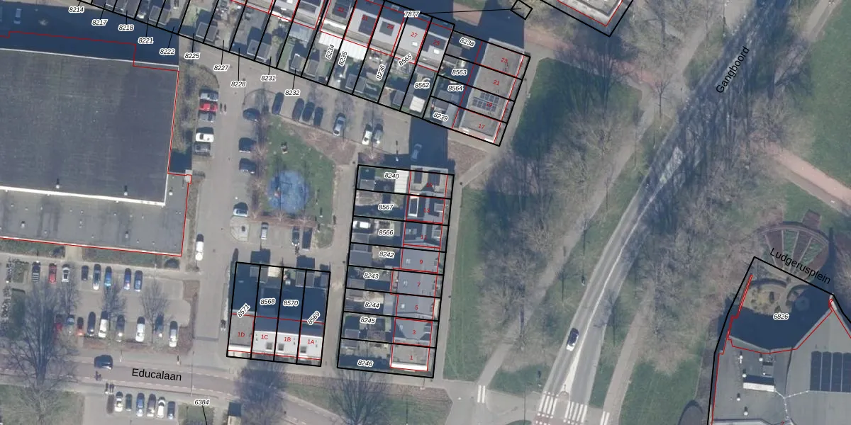 Het adres ligt op het perceel DTN01-A-8567, dat zich in de kadastrale gemeente Dronten bevindt. De gemiddelde perceelgrootte in Dronten is 1,8 ha. Dit perceel is kleiner: de perceeloppervlakte bedraagt 142 m². Het grootste perceel in de kadastrale gemeente is 25,03 km². Het kleinste perceel heeft een oppervlakte van 0 m². Dit is het enige adres dat aanwezig is op het perceel. De laatste wijziging in het de Basisregistratie Kadaster (BRK) was op 18-06-2020.