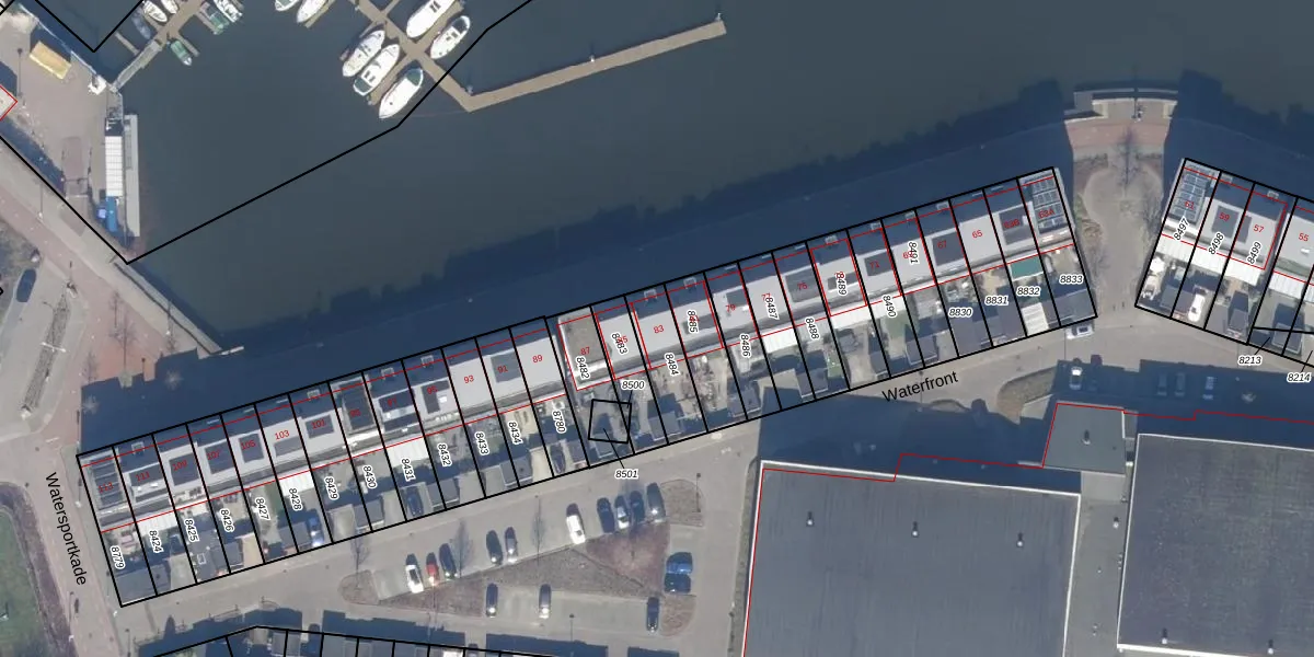 Waterfront 83 is gelegen op kadastraal perceel DTN01A8484. Deze kadastrale aanduiding is uniek en wordt gebruikt door het Kadaster om eigendomsrechten en andere zakelijke rechten vast te leggen. Het perceel maakt onderdeel uit van de kadastrale gemeente Dronten.