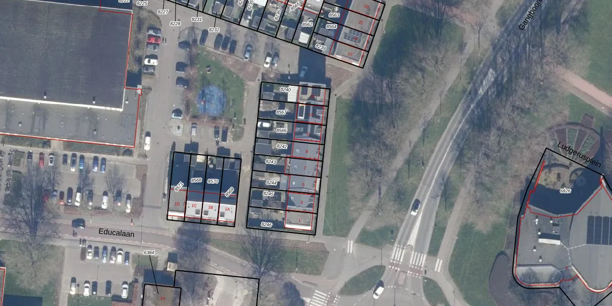 Het adres is gelegen op perceel 8242 in de sectie A en de kadastrale gemeente Dronten. De kadastrale aanduiding is aldus DTN01-A-8242. De gemiddelde perceelgrootte in Dronten is 1,8 ha. Dit perceel is kleiner: de perceeloppervlakte bedraagt 120 m². Het grootste perceel in de kadastrale gemeente is 25,03 km². Het kleinste perceel heeft een oppervlakte van 0 m². Op het perceel bevinden zich geen andere adressen. De laatste wijziging in het de Basisregistratie Kadaster (BRK) was op 24-10-2011.