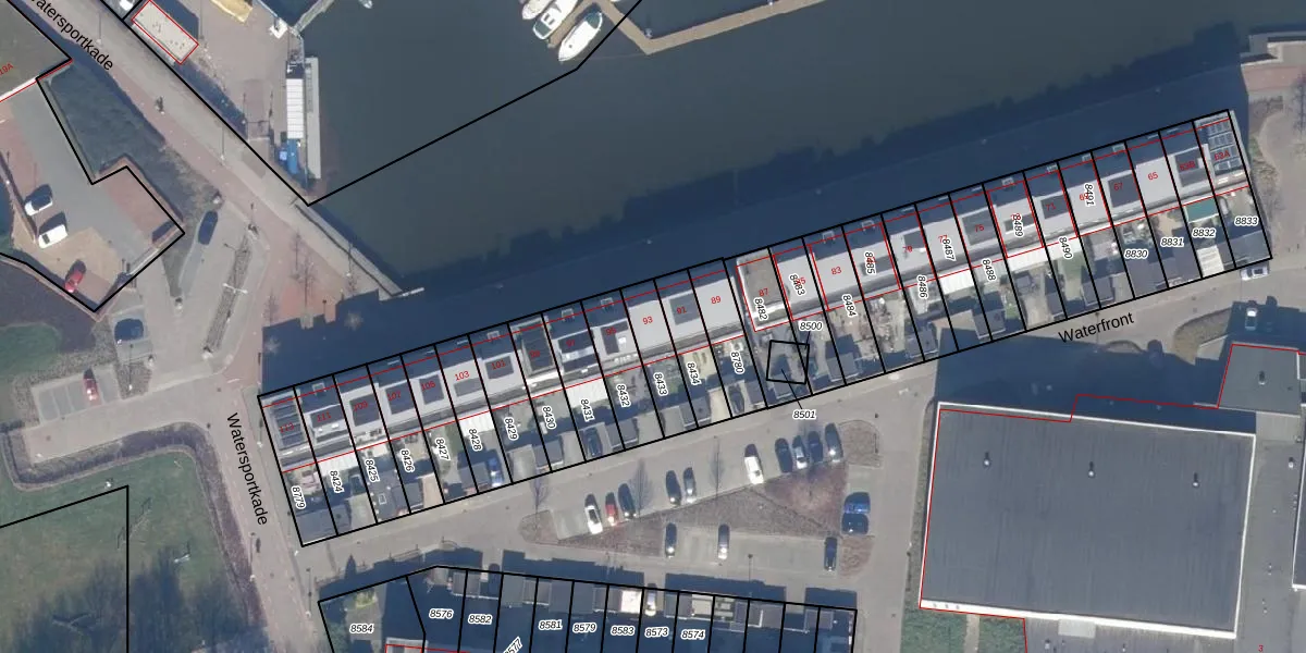 Het perceel waarop Waterfront 93 staat heeft een oppervlakte van 129 m². Dit is een middelgroot perceel. De perceeloppervlakte wordt geregistreerd door het Kadaster. Gedetailleerde informatie over de maten van dit perceel kunt u vinden in het rapport Kadastrale kaart met maatvoering van Waterfront 93.