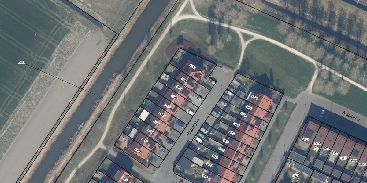 Waterpas 3 is gelegen op kadastraal perceel DTN01B2444. Deze kadastrale aanduiding is uniek en wordt gebruikt door het Kadaster om eigendomsrechten en andere zakelijke rechten vast te leggen. Het perceel maakt onderdeel uit van de kadastrale gemeente Dronten.