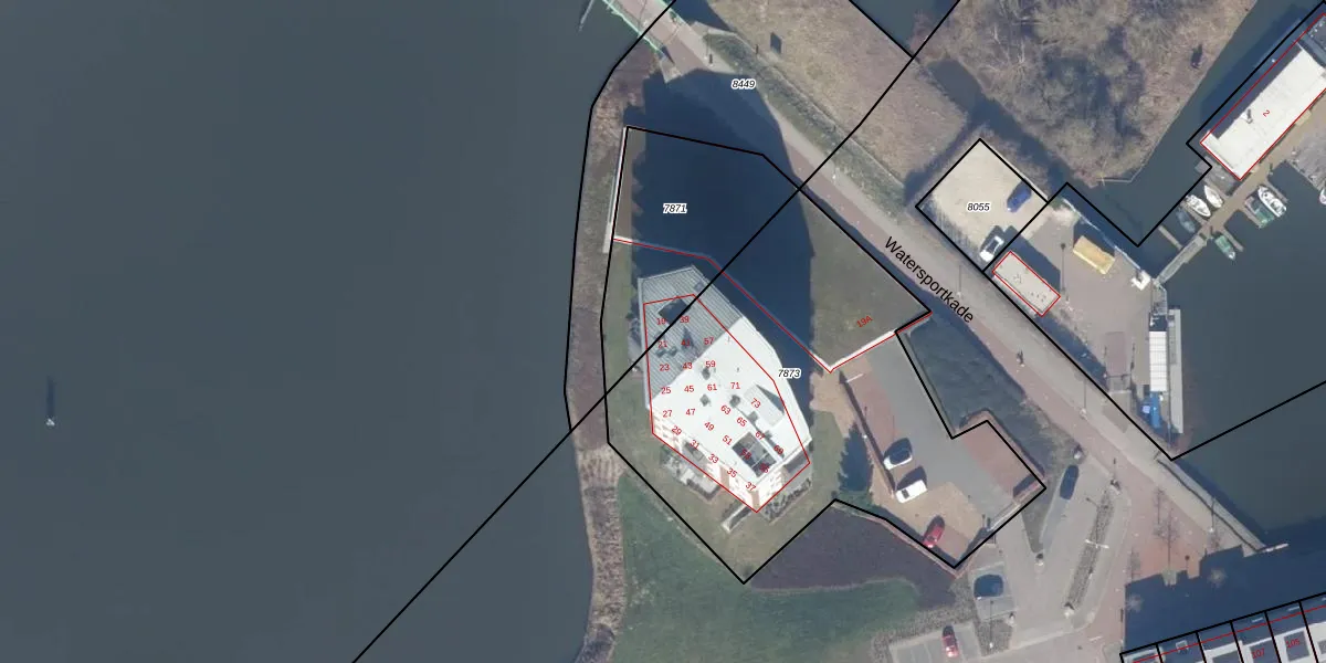 Het perceel waarop Watersportkade 23 staat heeft een oppervlakte van 612 m². Dit is een groot perceel. De perceeloppervlakte wordt geregistreerd door het Kadaster. Gedetailleerde informatie over de maten van dit perceel kunt u vinden in het rapport Kadastrale kaart met maatvoering van Watersportkade 23.